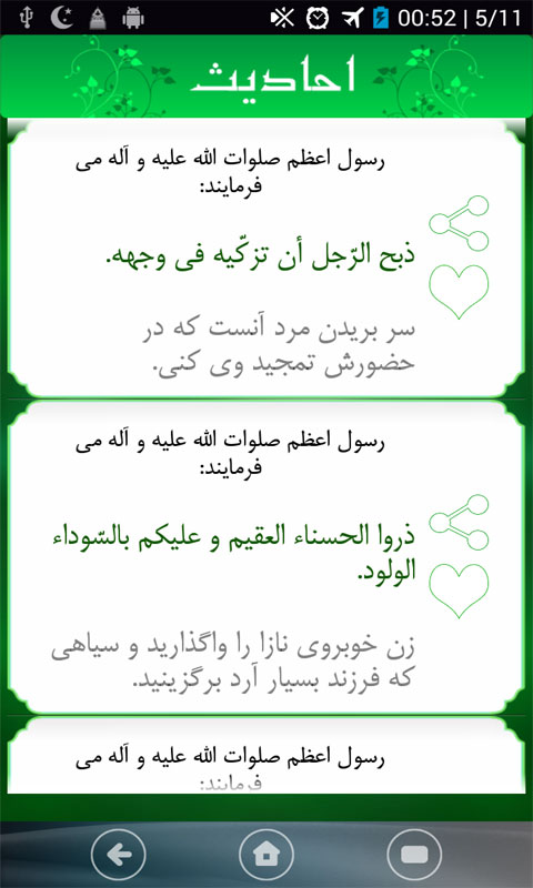 - اضافه شدن قابلیت اسکرول سریع برای لیست طویل احادیث هم در لیست اصلی و هم در قسمت برگزیده ها