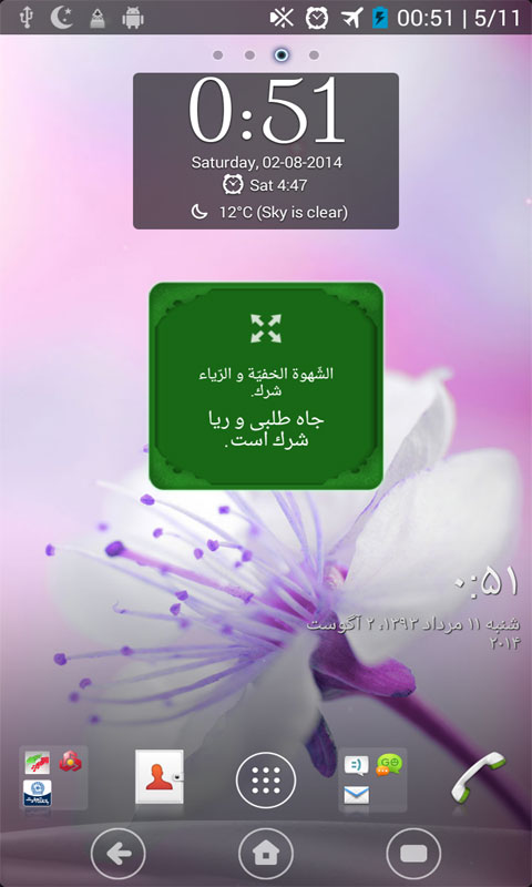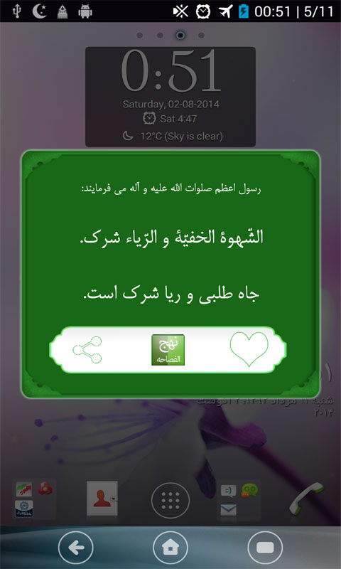 - ایجاد ویجت حدیث تصادفی در هوم اسکرین در صورت نصب برنامه در حافظه گوشی و آپدیت حدیث هر یک ساعت یک بار.