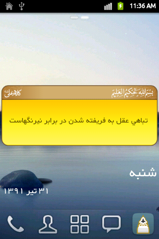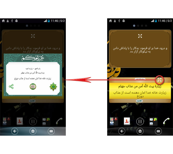 - دارای ویجت زیبا که هر ساعت یک حدیث جدید برایتان نمایش میدهد و یا با لمس آن حدیث عوض می شود در دوحالت بزرگ و کوچک
