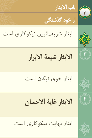 - پیمایش سریع بین لیست احادیث یا موضوعات