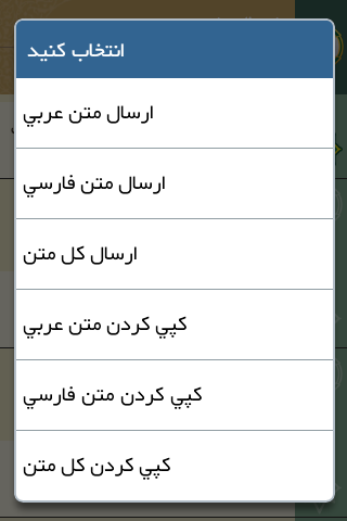 - قابلیت ارسال احادیث یا کپی کردن متن آنها به صورت عربی، فارسی یا فارسی-عربی