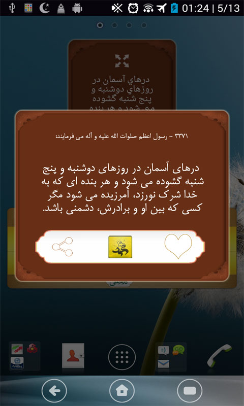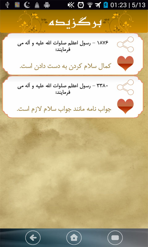 - قابلیت برگزیدن احادیث و اضافه کردن به علاقه مندی ها