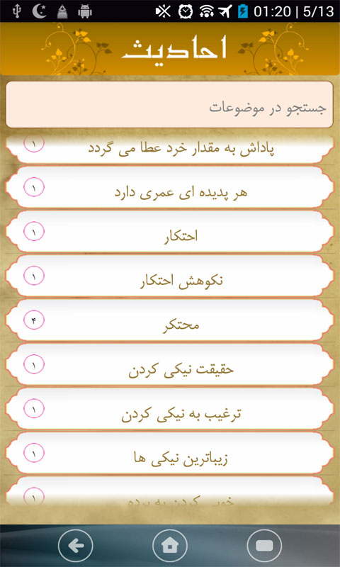 احادیث نبوی در حدود 1800 موضوع متفاوت + ویجت + جستجو + علاقه مندی + اشتراک گذاری