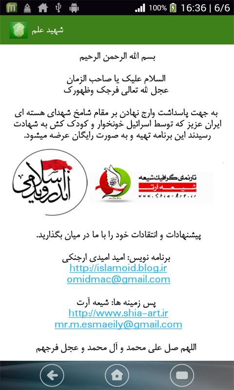 در این برنامه شما میتوانید تصویر زیبایی از شهدای دانشمند هسته ای را به عنوان پس زمینه برای گوشی خودتان انتخاب کنید.
