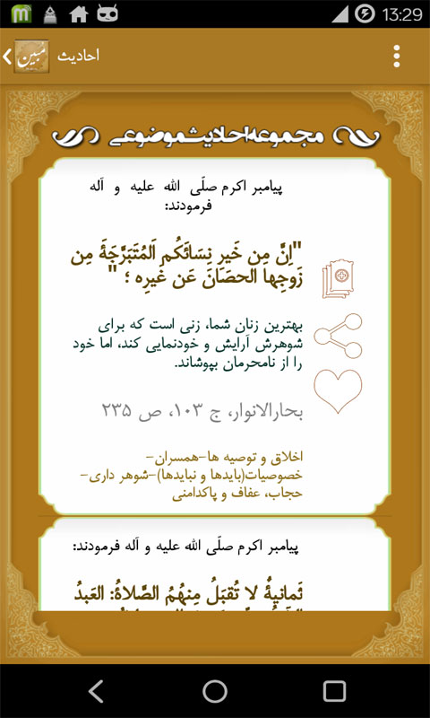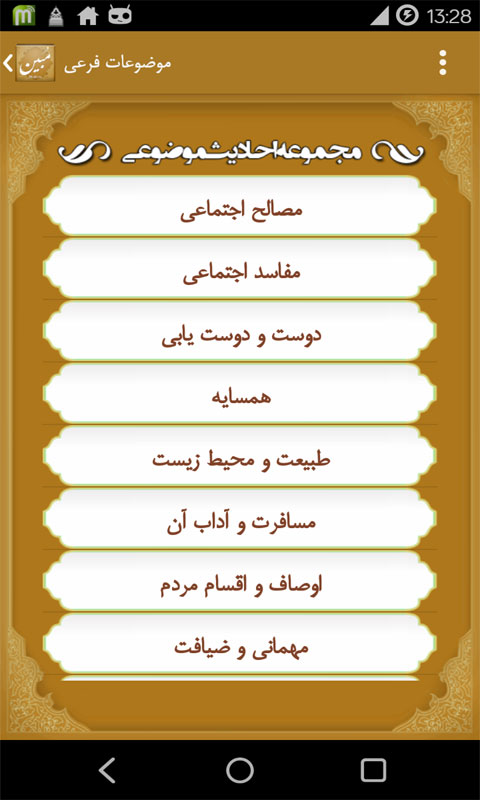 در این برنامه بیش از 16200 حدیث موضوعی با قابلیت جستجو در متن احادیث و موضوع ها وجود دارد.